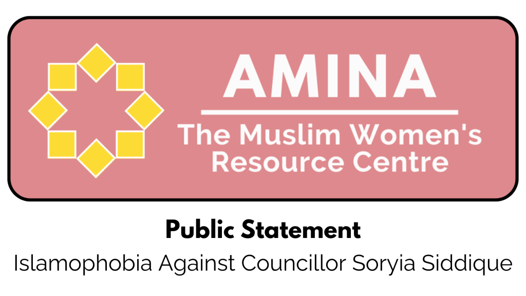 Amina MWRC’s Public Statement on Islamophobia Experienced by Glasgow Councillor Soryia Siddique, urging Politicians & Community Members to speak up against such hatred.